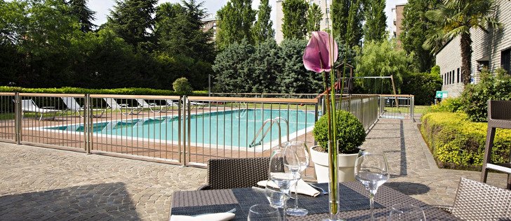 Hotel 4 stelle con giardino e piscina. Servito infine da mezzi pubblici e con ampio parcheggio.