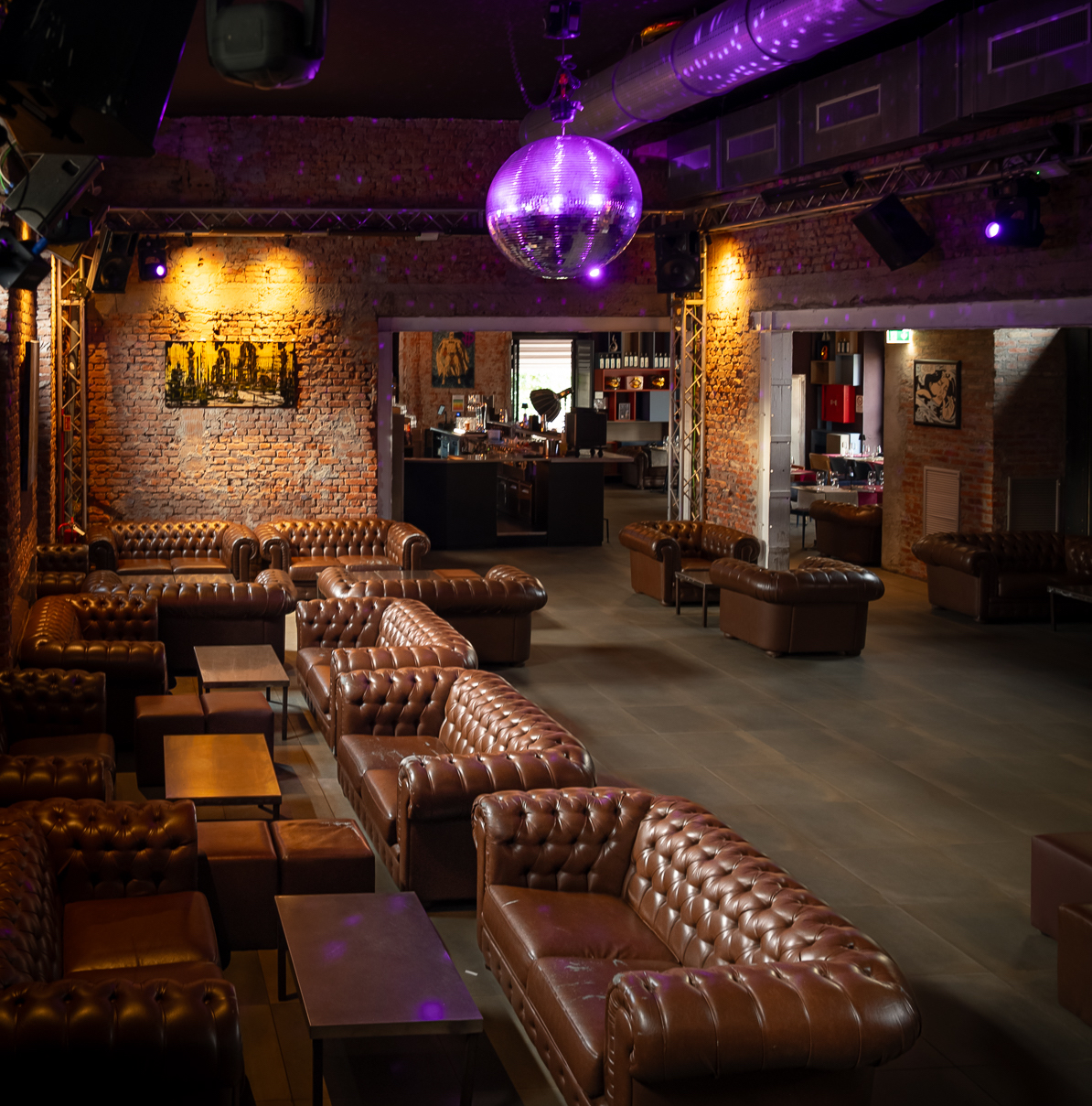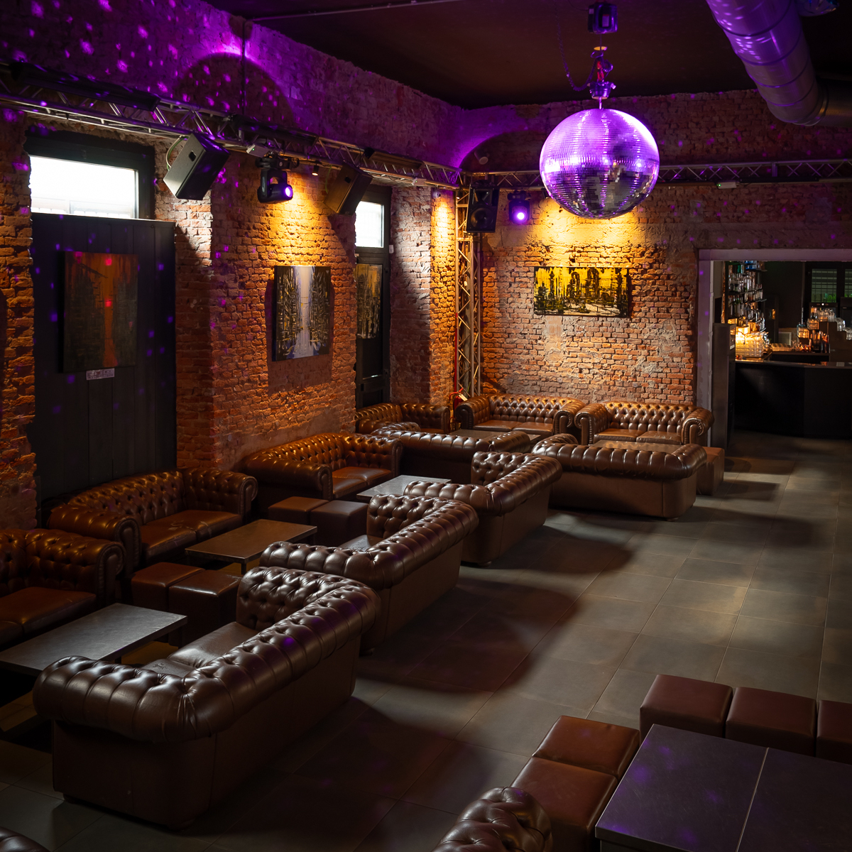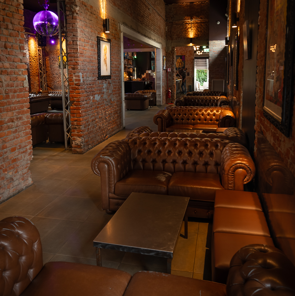 All’interno del locale potrai trovare inoltre comodi divani neri di pelle ed un palco dedicato a concerti o spettacoli di cabaret.