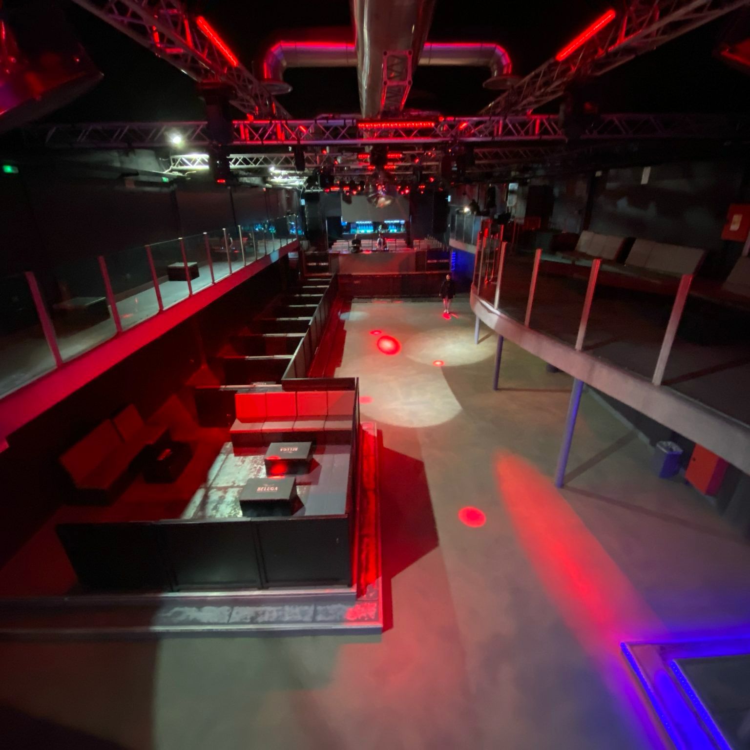 La pista da ballo è di 200 mq e un soppalco zone che ospita divani, tavolini e sedie.